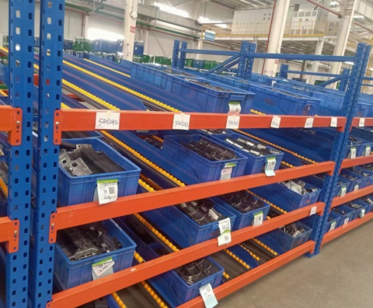 流利式貨架★采用滾輪式鋁合金、鈑金兩種等流力條,利用貨物自重實現(xiàn)貨的先進(jìn)先出★存取方便,適合于裝配線兩側(cè),配送中心等場所★可配以電子標(biāo)簽,實現(xiàn)貨物的信息化管理