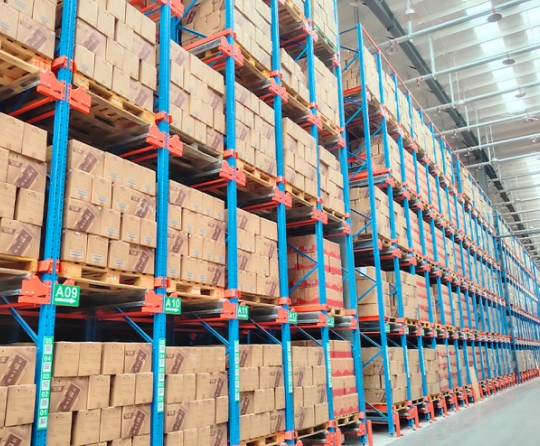 貫通式貨架丨駛?cè)胧截浖?/span>★貨物存儲(chǔ)通道亦為叉車儲(chǔ)運(yùn)通道,是存儲(chǔ)密度較高的一種形式貨架?!锿ǔ1挥糜谄贩N較少但批量大,且對(duì)貨物揀選要求不高的貨物存儲(chǔ)。★以普通叉車的提升高度,通廊貨架層數(shù)為三層貨物的常規(guī)方案計(jì)算,倉庫的有效存儲(chǔ)容量可增加100%以上,相比之下投資成本得到控制,效益顯著提升。從全局存儲(chǔ)成本計(jì)算,一般在三年內(nèi)所增加存儲(chǔ)容量效益即可抵銷投資成本。★貨物遵循先進(jìn)后出原則, 適用大多數(shù)搬運(yùn)機(jī)械儲(chǔ)運(yùn)作業(yè)。