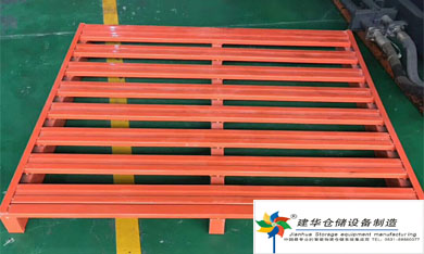 ★鋼制托盤是一種用于機械化裝卸、搬運和堆存貨物的集裝箱單元工具,基本結構由單層鋪板下設縱梁或墊塊、支腿等所組成,托盤的小高度以能方便使用叉車或托盤搬運車為原則。