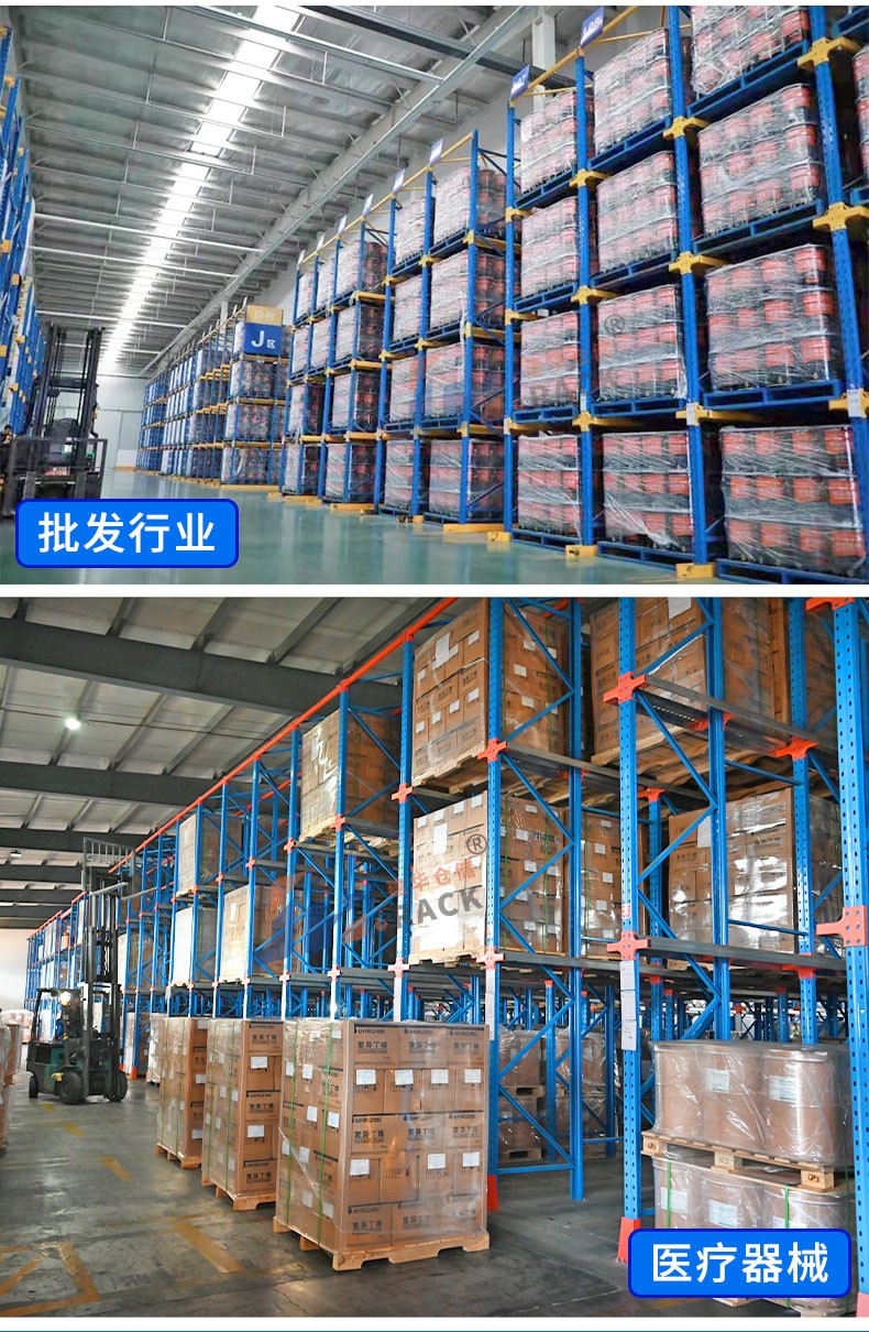 ★貨物存儲(chǔ)通道亦為叉車(chē)儲(chǔ)運(yùn)通道,是存儲(chǔ)密度較高的一種形式貨架。